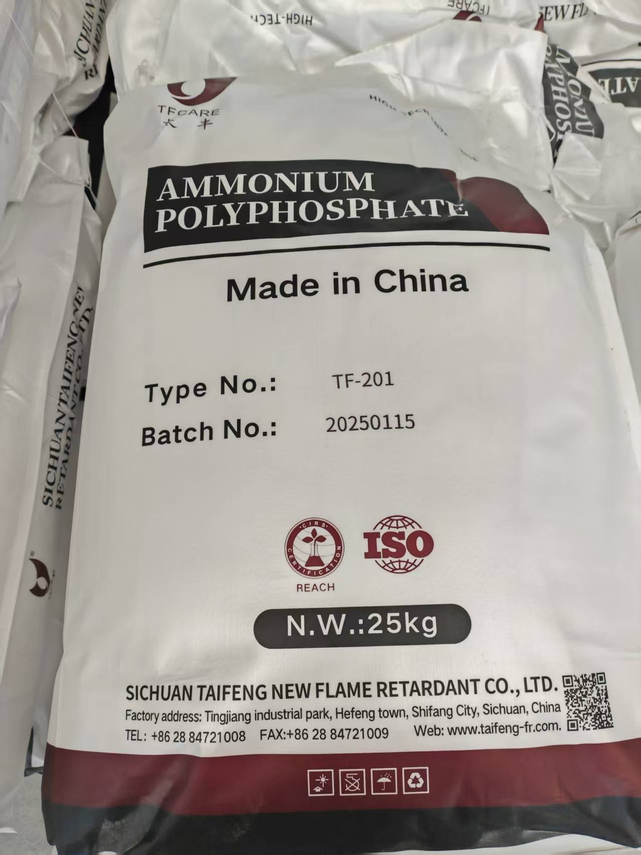 TF-201، هو كذلكيساوي Clariant Exolit AP422لـطلاء متطاير. يستخدم لطلاء مضاد للحريقيستخدم على نطاق واسعالطلاءوطلاءات الحريقعلى الخشب وصلب البناء، والخشب المقاوم، والمكونات المركبة من الخشب والبلاستيك.